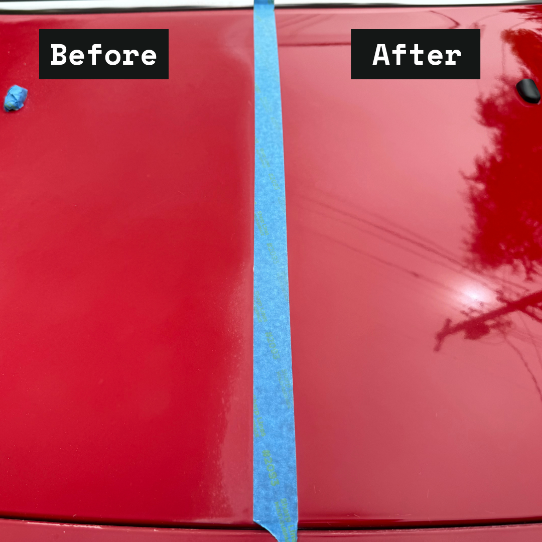 For a 1 Step Paint Correction, we use a “cutting” compound on a foam pad with an orbital polisher to remove scratches and blemishes, as well as about 40% of swirl marks